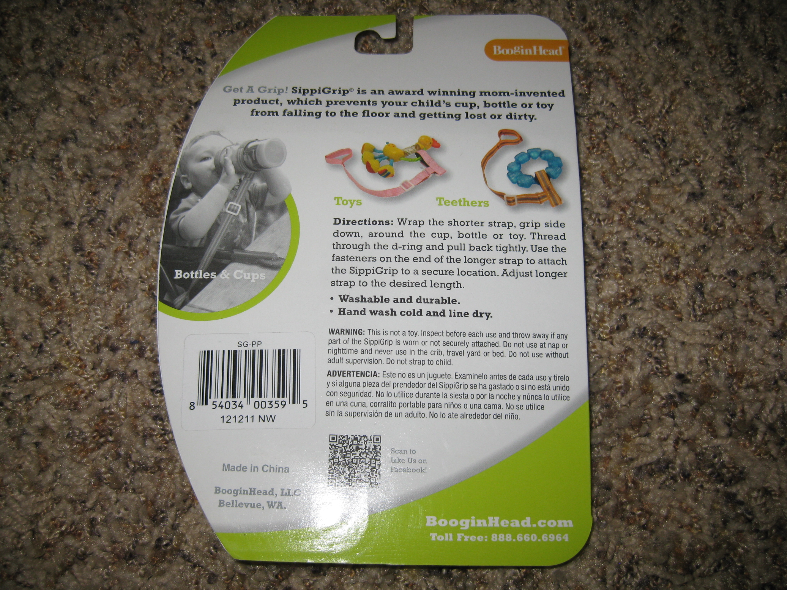 $6 each, new baby infant child holds cup or toy from falls BooginHead® SippiGrip®. SippiGrip® is an award winning mom-invented product, which prevents your child's cup, bottle or toy from falling to the floor and getting lost or dirty. Features patented grip material for a strong hold. Adjusts in length to fit high chairs, strollers, car seats & more.