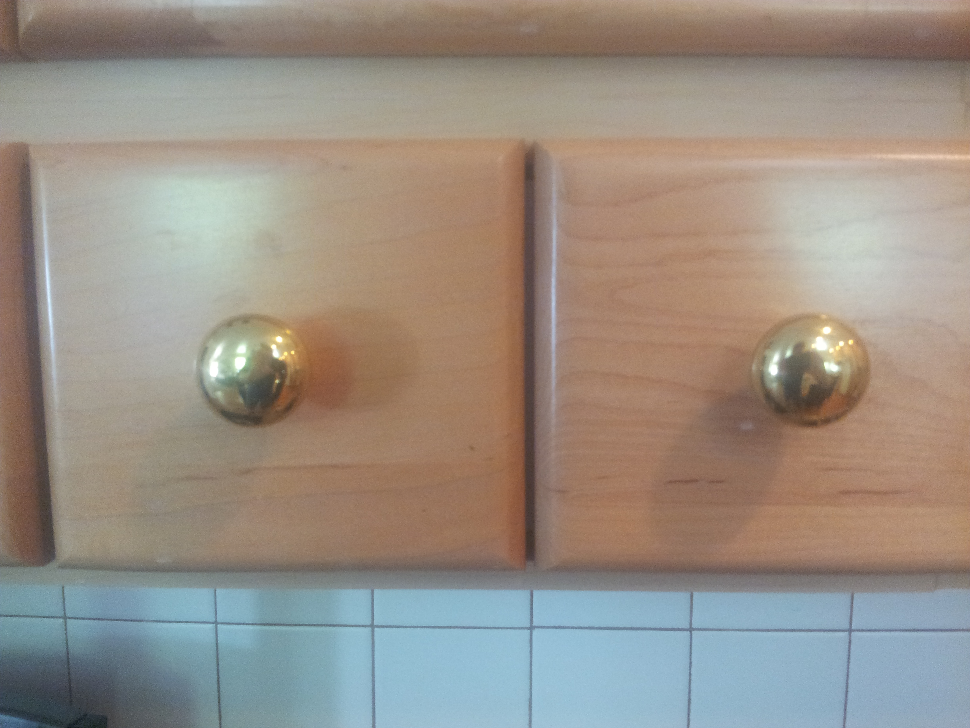 Great condition! We have a total of 16 knobs. All are identical. Buy as few or any many as you would like. Gold circular knobs. Comes with screws to install easily. Call or text Jean at 801-866-3713. Cash only please. Thanks!