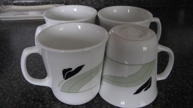 For sale are Corning Ware Set of 4 Black Orchid Mugs. As shown on the Pictures. They are in Very Good Condition. Asking $1 each.