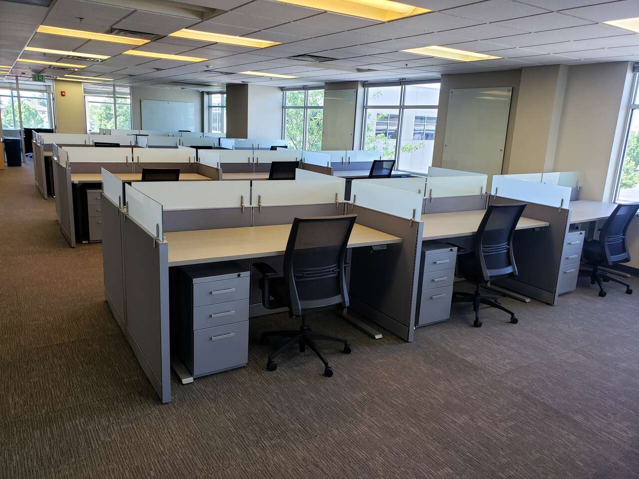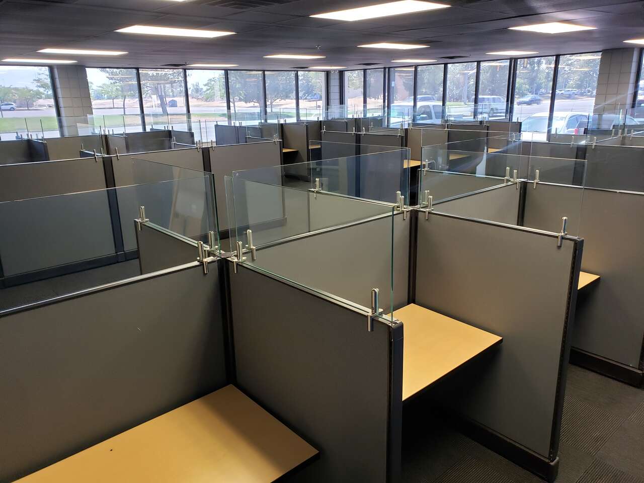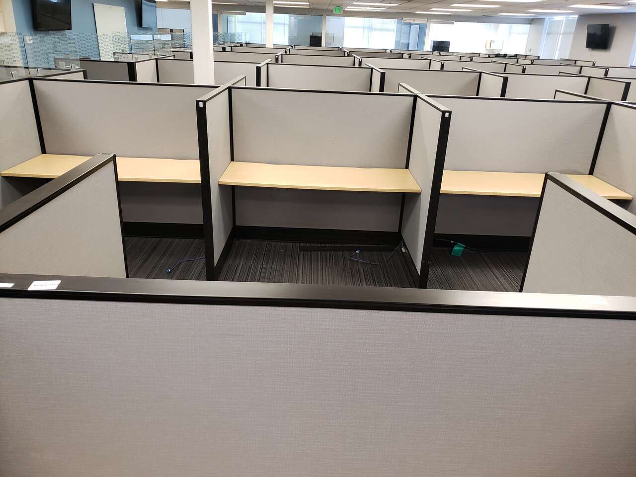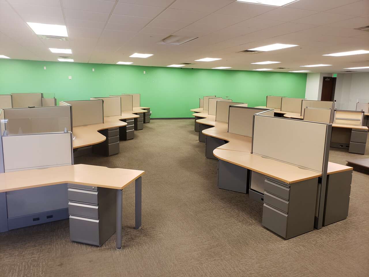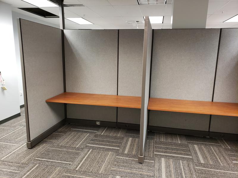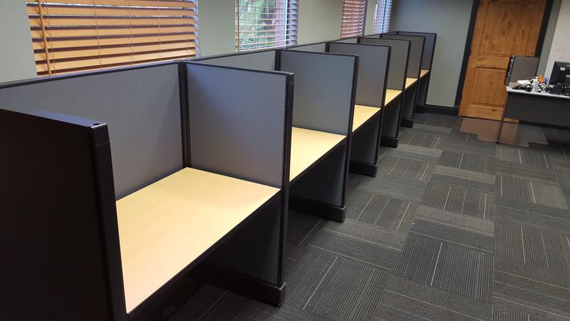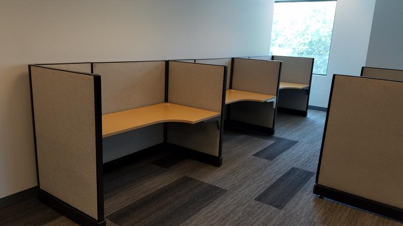 My inventory is constantly fluctuating, so reach out if you have a specific size and quantity you're in need of. Common sizes rectangular call center stations I generally have in stock: 36", 42", 48", 60", and 72"W starting at $250.00 per. L-shape stations: 60" x 48", 60" x 60", 72" x 72", 84"W x 84"D starting at $400.00 per.