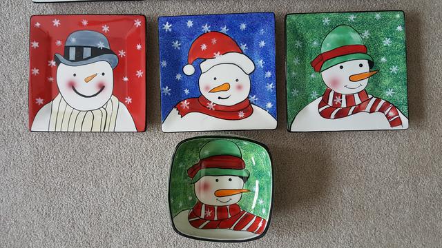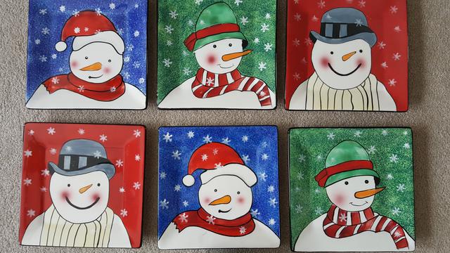 Take all for $5! EXCELLENT CONDITION! Dishwasher and microwave safe. Can be used for food or display. Each plate measures a little over 8 inches by 8 inches. 6 matching snowman plates and bowl. Message or text any time. Cash only please. I can meet at the Kaysville Library (Tuesdays or Fridays) or the South Weber Maverik. Please see my other ads. Thanks!