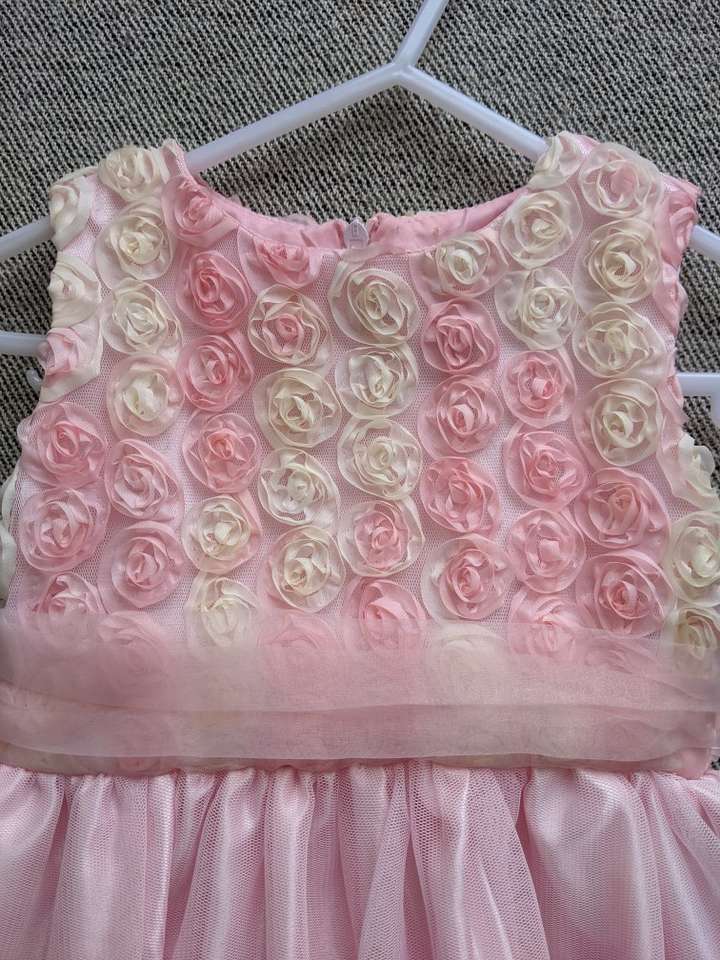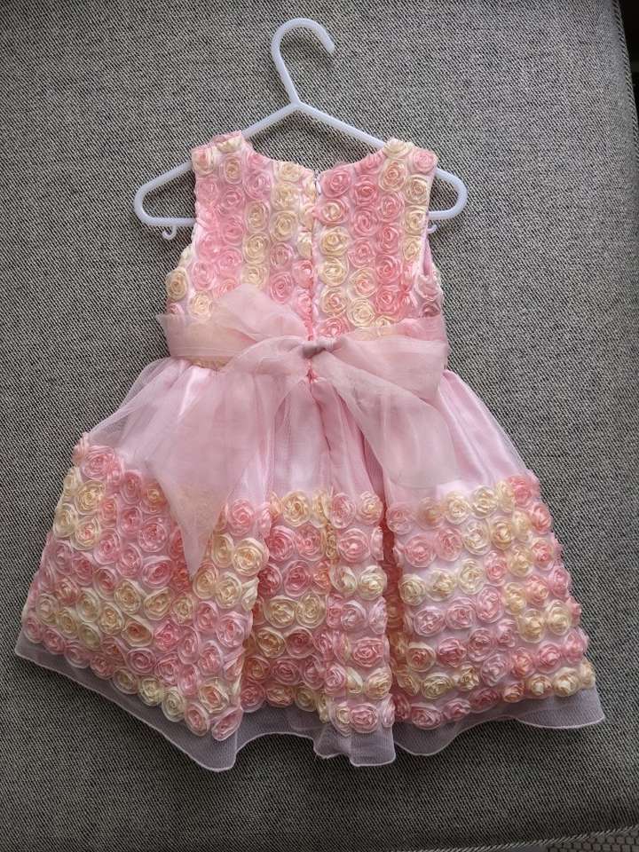 LIKE NEW CONDITION! I bought and saved this beautiful dress for my little girl to wear but I tried it on her and it fits small. The size on the tag says 24 months but it fits like size 18 months. I already cut the tags off and do not have the receipt so I'm trying to sell here. It's a gorgeous dress and would be perfect for pictures, a wedding, Easter or any special occasion. The colors on the dress are mostly pink with pink and peach color roses. Comes from smoke free, pet free home. Call or text any time. Cash only please. I can meet at the Kaysville Library or South Weber Maverick. Please see my other ads. Thanks!