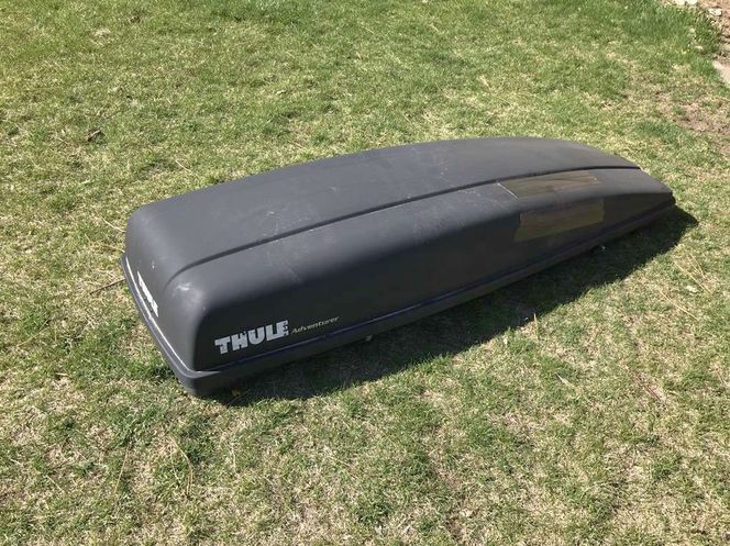-- Thule Adventurer Black $365 , 88"x 25 in x16", 15cf this box is low profile & SPACY .. Passenger side opening.. locks &a key. original Mounting hardware connects to bars in no time, and fits all crossbars. everything works. A crack on the side was repaired properly and is hardly visible. Ready to go!