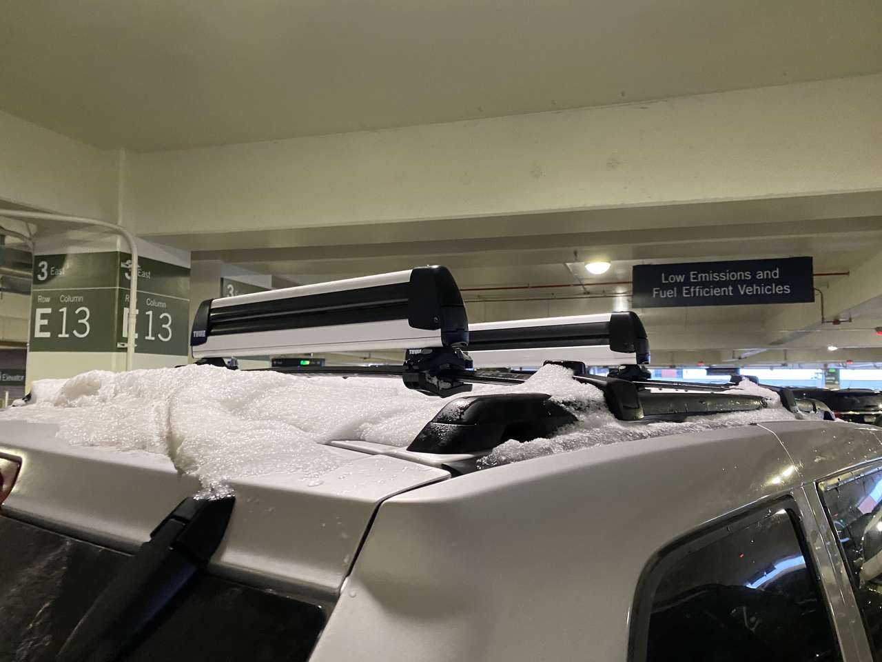 Thule large (24" available space) w/ locks 1 key $120 works with Thule square bars. $165 for oval bars. Large Thule extender (slides out of the roof for load/unload) & comes with universal mounts with locks key $210