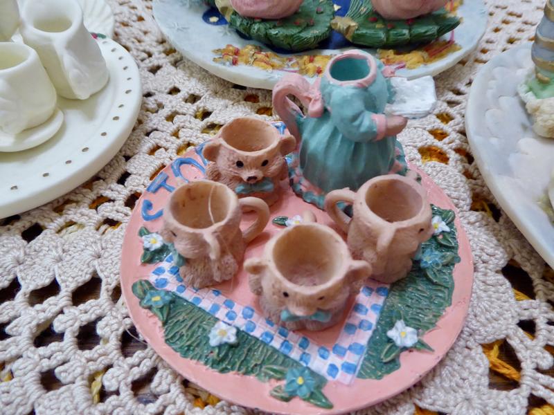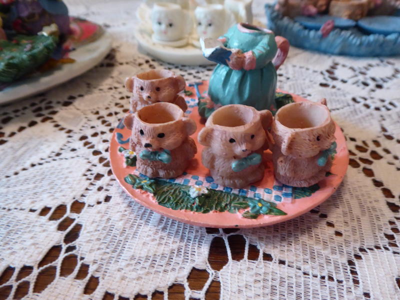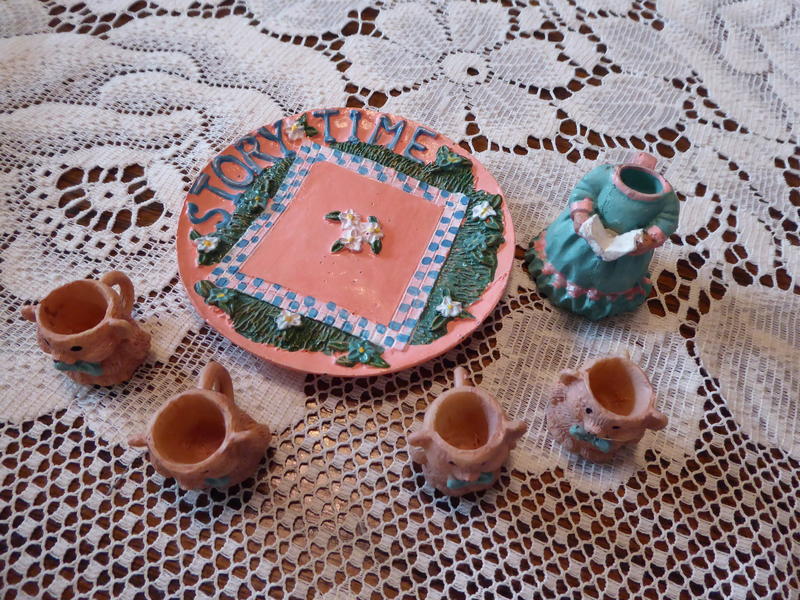 ***Please Note... The Book Reader piece in a dress is missing its' head --but the cute bear cups and the plate would be cute displayed together as a set. ( If you are real creative you could always create a head for the book reader - if you so desire).