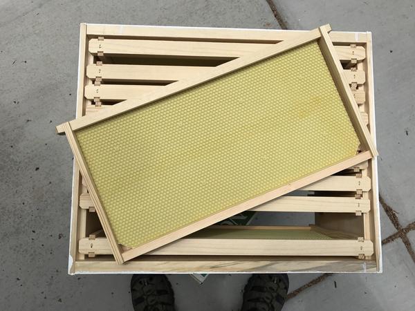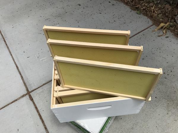 CashAppNew full depth supers with 10 frames and foundation. The supers are made from western pine and have interlocking finger joints on the corners. Assembled using galvanized staples. They have also been painted an exterior white. The frames are both glued and stapled, making them extremely durable. The foundation is thick plastic with a heavy coating of beeswax. See my other ads for more beekeeping equipment.