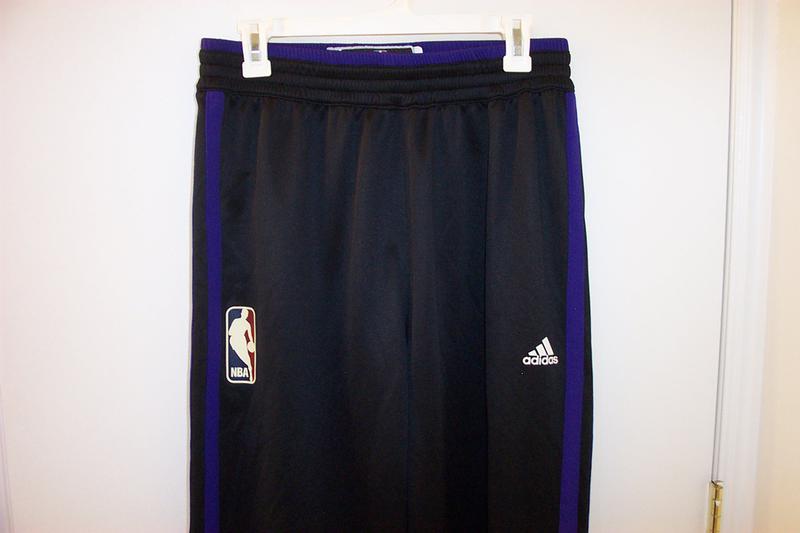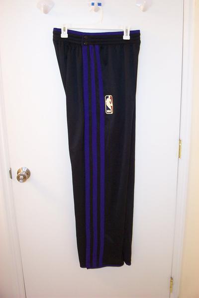 VenmoAdidas authentic NBA climacool pants. Size L +2. Black with purple accent stripes. Breakaway snaps down both legs. Inner drawstring at waist. Excellent, like new condition! 32.5 inch inseam.