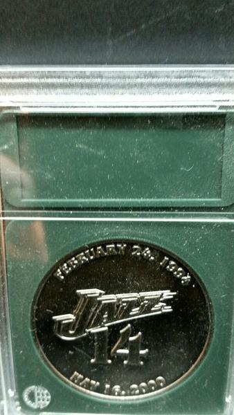 2 COINS 1 is in a Heavy COIN protective coin slab...plastic slab is free...they cost: 1.75. Front; November 19, 2002 Back; February 24, 1994 - May 16, 2000. 2nd coin is in a package. That coin is sealed and has lots of HISTORY of his career. As seen in picture. Near Ogden Canyon location. Porch pick up.