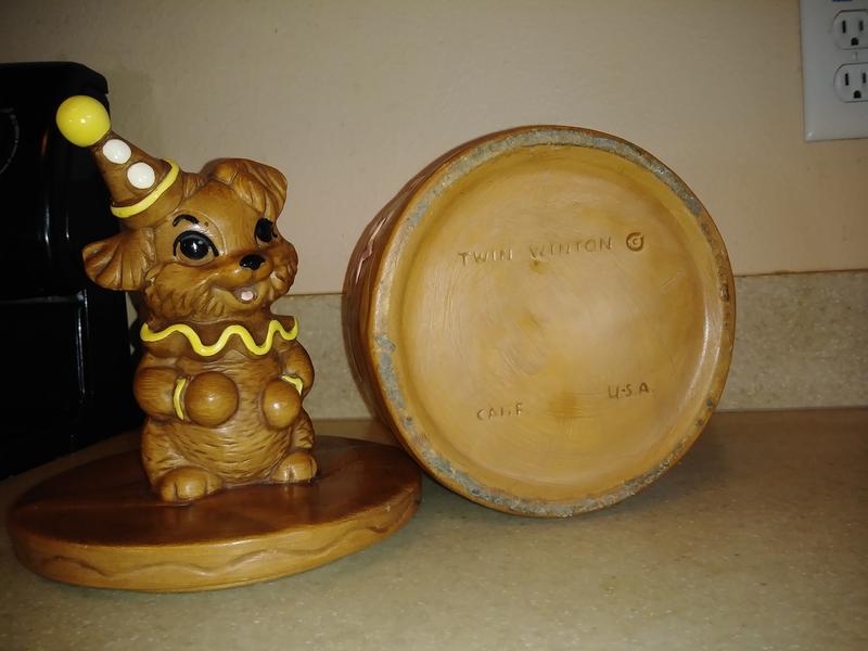Vintage 1960s (hard to find) Twin Winton Calif USA circus puppy cookie jar in excellent condition. 12"x7"