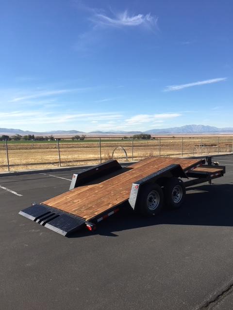 Mainframe: 14K Model: 2" x 5" x 1/4" Rectangular Tube Coupler: 2-5/16" Adjustable Coupler Deck: 2" x 10" Treated Douglas Fir Deck Length: 20’ Deck Height: 24" Inside Fender Width: 85" Tilt Angle: 10 Degree Dexter Axles: 7K Torsion Tires: 14K Model: 235/80R16 E on 8-Hole Wheel Brakes: Electric Landing Gear: Single 12K Spring Loaded Drop Foot Jack Tie Downs: (4) 5/8" D-Rings per Side Spare Mount: Mounted on Front Side of Tongue Chain Box: Includes Locking Lid Cross Members: 2-1/2" x 2-1/2" 3/16" Angle Lights: DOT Approved LED Sealed Beam With Rubber Grommet Wiring: DOT Modular Wiring Harness Safety: Reflective Tape, Safety Chains with Hooks, Break-Away Switch with Battery Charger Finish: Black Powder Coat Finish Warranty: One Year Limited Structure See our website for more trailers! www.k2-trailers.com and follow us on Facebook! See our other ads We are a licensed and bonded dealer