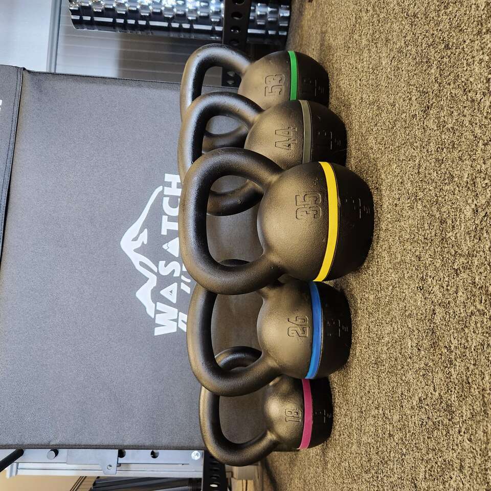 Special price for a full set including 18, 26, 35, 44 & 53 pound pro grade Wasatch kettlebells for just $335!
