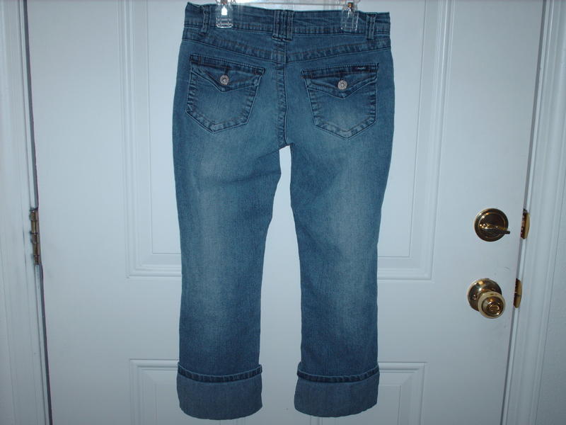 This is a pair of Angels Jeans brand stretch denim capris in a Juniors size 5. They are in excellent condition, my daughter just outgrew them. If you're interested, please call or text 801-505-2216. Thanks!