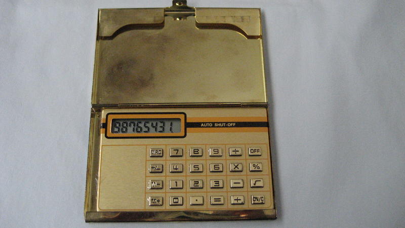 Vintage Calculator in Golden Metal Case. This Solar calculator is in excellent working condition.