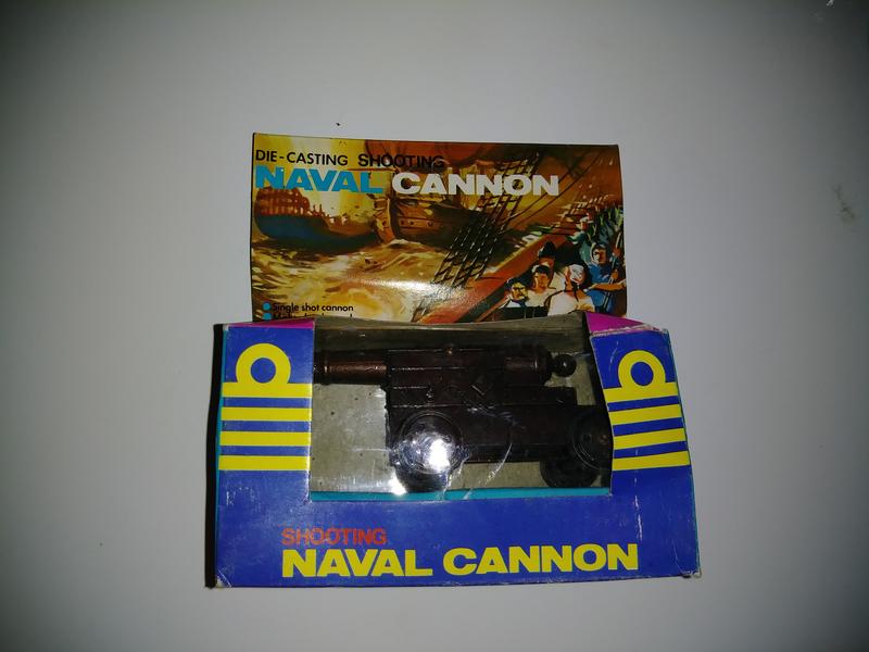Vintage die-cast shooting Naval cannon 3 1/2 inch new in the box. I have a revolutionary and a few more.