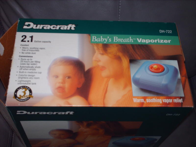 This is a Duracraft Baby's Breath Vaporizer model number DH-722. It has a 2.1 gallon capacity and runs up to 25 hours per filling (uses tap water). It automatically shuts off when empty and has a built-in medicine cup. Only been used a couple of times. Thanks for looking!