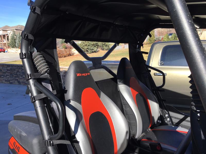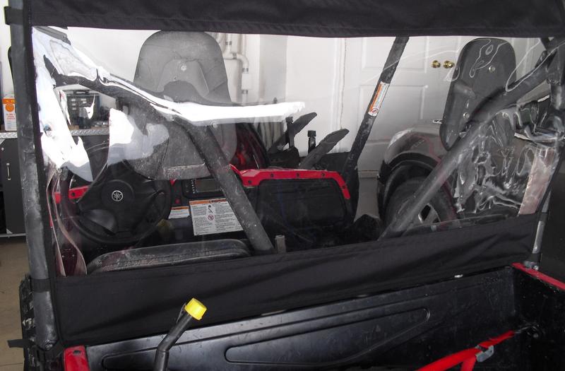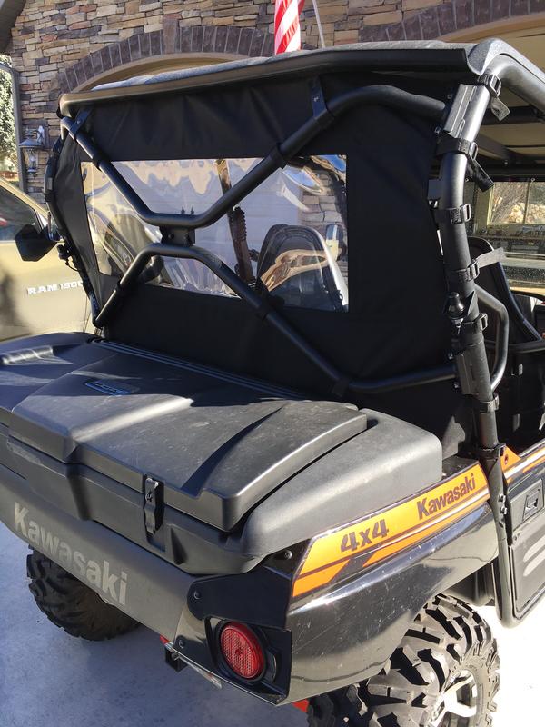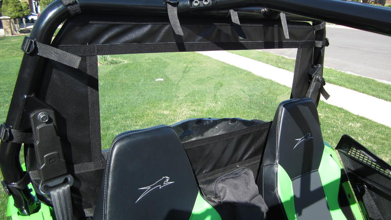 Rear windows/dust barriers and overhead bags for your Arctic Cat 700/1000, Kawasaki Teryx 4, Can Am Commander 1000 and 800, Honda Pioneer, Honda Talon, Yamaha Rhinos, Yamaha Woverines and YXZs starting as low as $79.95. Great protection from wind, dust and rain on those days when everyone else has stayed home. Made from 1680 Ballistic Nylon and 30 gauge marine grade vinyl. Most even roll up and out of the way when dust and weather permits. Overhead bags are lage enough to hold coats, gloves, wallets, car keys, phones, etc..... Great storage alternative!