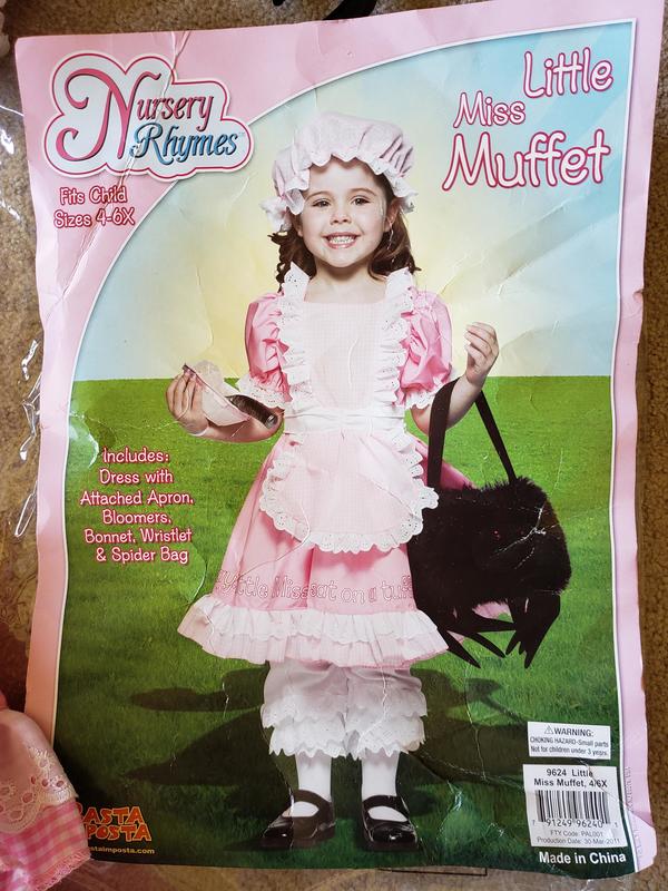 LIKE NEW CONDITION! Size 4 - 6x. Comes with dress, bloomers, hat, silver spoon (has velcro on bottom so it sticks in the bowl), curds and whey in bowl (with band on bottom so it can be worn on the wrist - see pictures), and spider bag for carrying candy. Message or text any time. Cash only please. I can meet at the Kaysville Library (Tuesdays or Fridays) or South Weber Maverick. Please see my other ads. Thanks!