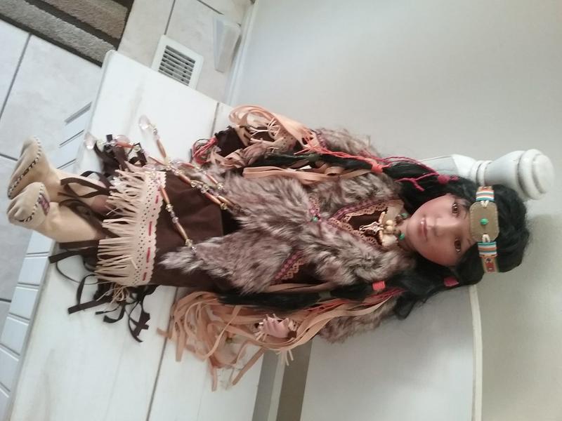 selling my porcelain Native doll. she stands approximately 28in tall. I have had her for over 10yrs. she is great condition for how long we have her she has in kept in a doll case. smoke free home $40.