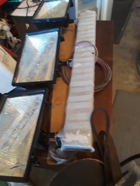 Brand New 3 light 1500 watt yard or parking light. Brand new, never installed. 3 x 1500 watt halogen lights on one rail, 240 volt. Great for basketball or tennis court with a pole mount. text is best $65⁰⁰ obo