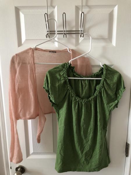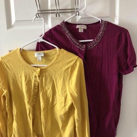 skirt and dress size 8. Shirt and sweaters Size medium. $4 per item or 3 for $10.