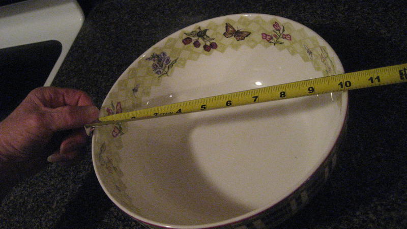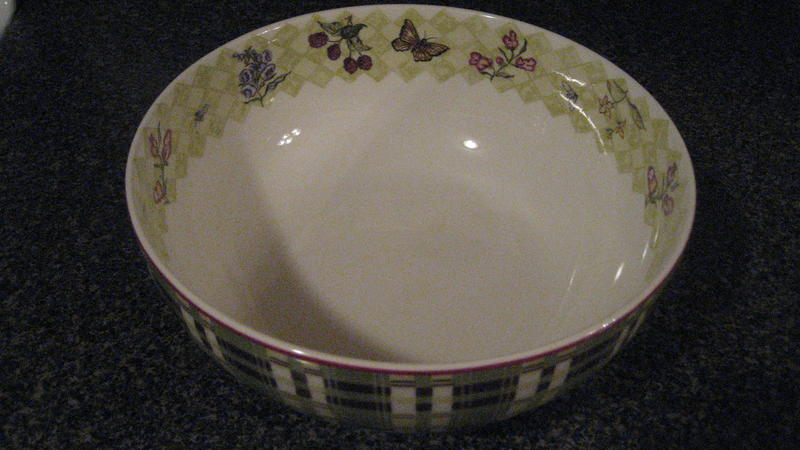 Tracy Porter Home Collection Sweet Briar Rose Salad Bowl - Portugal. 10" inch Diameter x 4"inch Tall,. Some minor utensil hairlines. Otherwise in good condition.