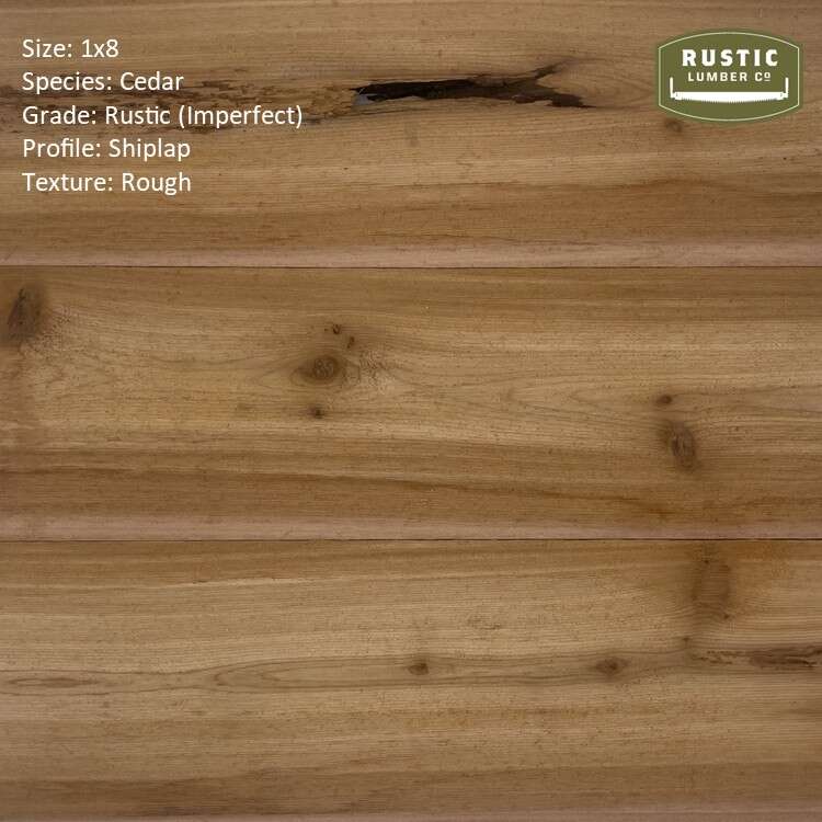 What a beautiful look! We have 1x8 Cedar in both a Shiplap and T&G. The biggest difference between the two is that the Shiplap comes in Rustic Grade and the T&G comes in Select Grade. You can see that the Rustic Grade is less than half of the price of Select Grade. Expect open holes, splits, and higher installation waste with Rustic Grade. Select Grade still has knots but they are closed tight with few splits and a much higher installation yield.