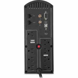Device Type UPS - external Power Device UPS Technology Line interactive Input Voltage AC 90-140 V Frequency Provided 60 Hz ± 1% Frequency Required 60 Hz Input Connectors 1 x power NEMA 5-15 Power Output Connectors Details 5 x power NEMA 5-15 (surge) 5 x power NEMA 5-15 (UPS and surge) 2 x 4 pin USB Type A - 2.1 A Output Voltage AC 120 V ± 5% - 60 Hz Power Capacity 900 Watt / 1500 VA Dataline Surge Protection Phone line - RJ-11 - 1 input line / 1 output line Coaxial - 1 input line / 1 output line Output Waveform Stepped approximation to a sinewave Surge Suppression Yes Surge Energy Rating 890 Joules Circuit Protection Circuit breaker Battery Quantity 2 Technology Lead acid Voltage Provided 12 V Capacity 9 Ah Run Time (Up To) 2 min at full load 13 min at half load Recharge Time 8 hours Features Sealed Networking Remote Management Interface USB, serial Expansion / Connectivity Interfaces 1 x USB 1 x serial Miscellaneous Cables Included Power cable - integrated - 6 ft USB cable - external