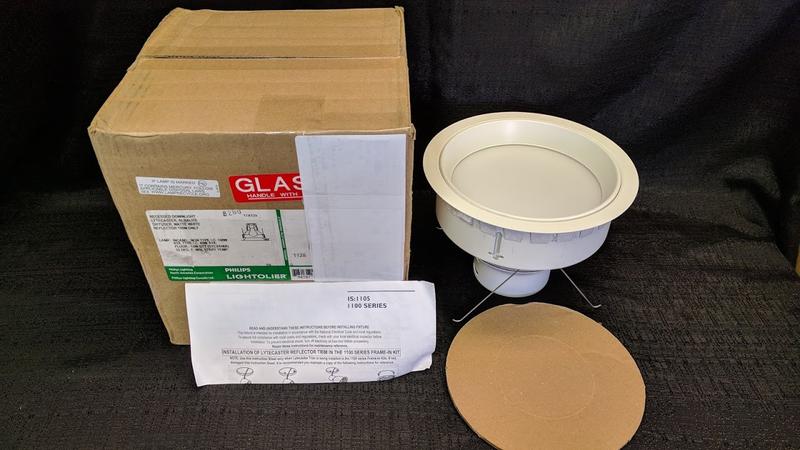 Lightolier Lytecaster Collection 6-3/4-Inch Regressed diffuser reflector trim features 0.04-Inch thick hydroformed aluminum construction. It accommodates 13-Watt CFL Quad T lamp. It comes with white diffuser. Trim has white diffuser with light bezel to reduce brightness transition to ceiling. It is ideal for wet and damp locations. Regressed diffuser reflector trim is UL listed. Spun aluminum 0.04-Inch thick lens bezel in matte white finish Diffuser in white color Has trim size of 6-3/4 inches