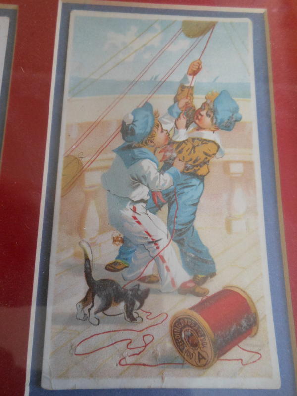 3 post card sized 1900s trade cards in a 12 1/2" x 15 1/2" frame.