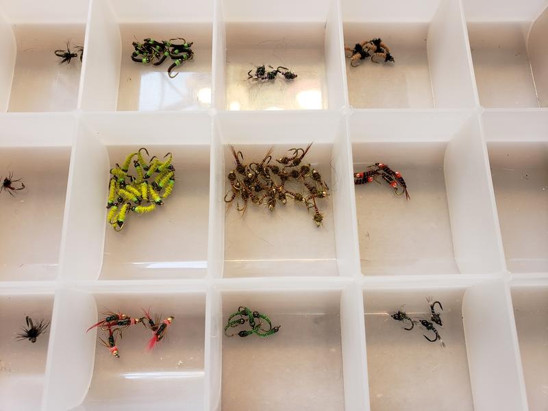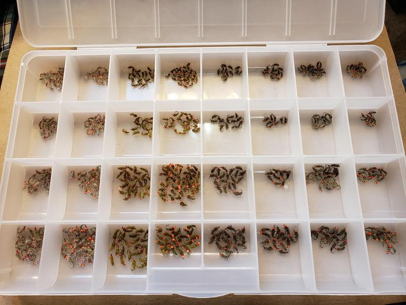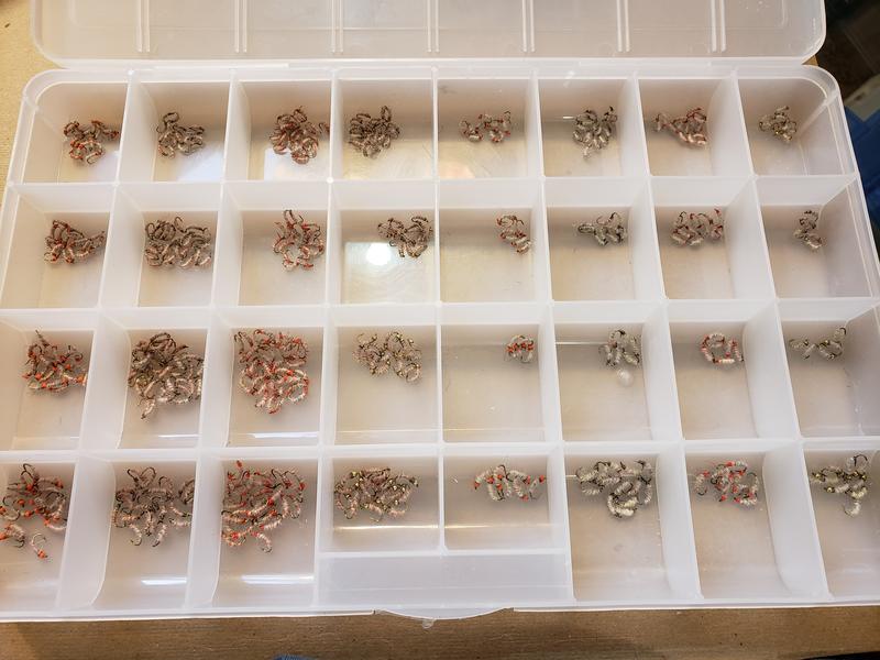 I have a thousands of regular and tungsten flies for sale. $1.00 for regular $1.50 for Tungsten, Hopper and Streamer patterns ($2.00). I've been tying for over 30 years and have a lot of great local patterns for the Provo, Weber, Green and High Uintas. I also have assortments ready to go and can build custom boxes for the season.