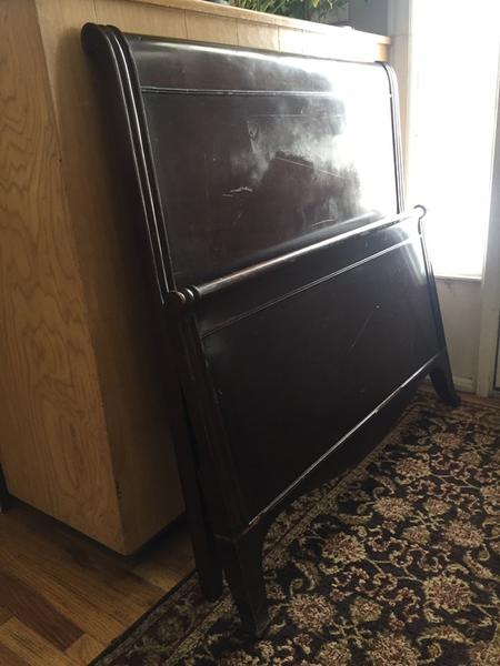 FINAL MARKDOWN, price is firm Selling this beautiful solid wood twin sized headboard and footboard only, sorry I do not have the rails. This bed is in good condition for its age, with exception of few minor issues with piece of trim needing replacement (shown in pics) and one minor chip in on one foot. Otherwise, this bed is its original condition and sure to last many more generations!