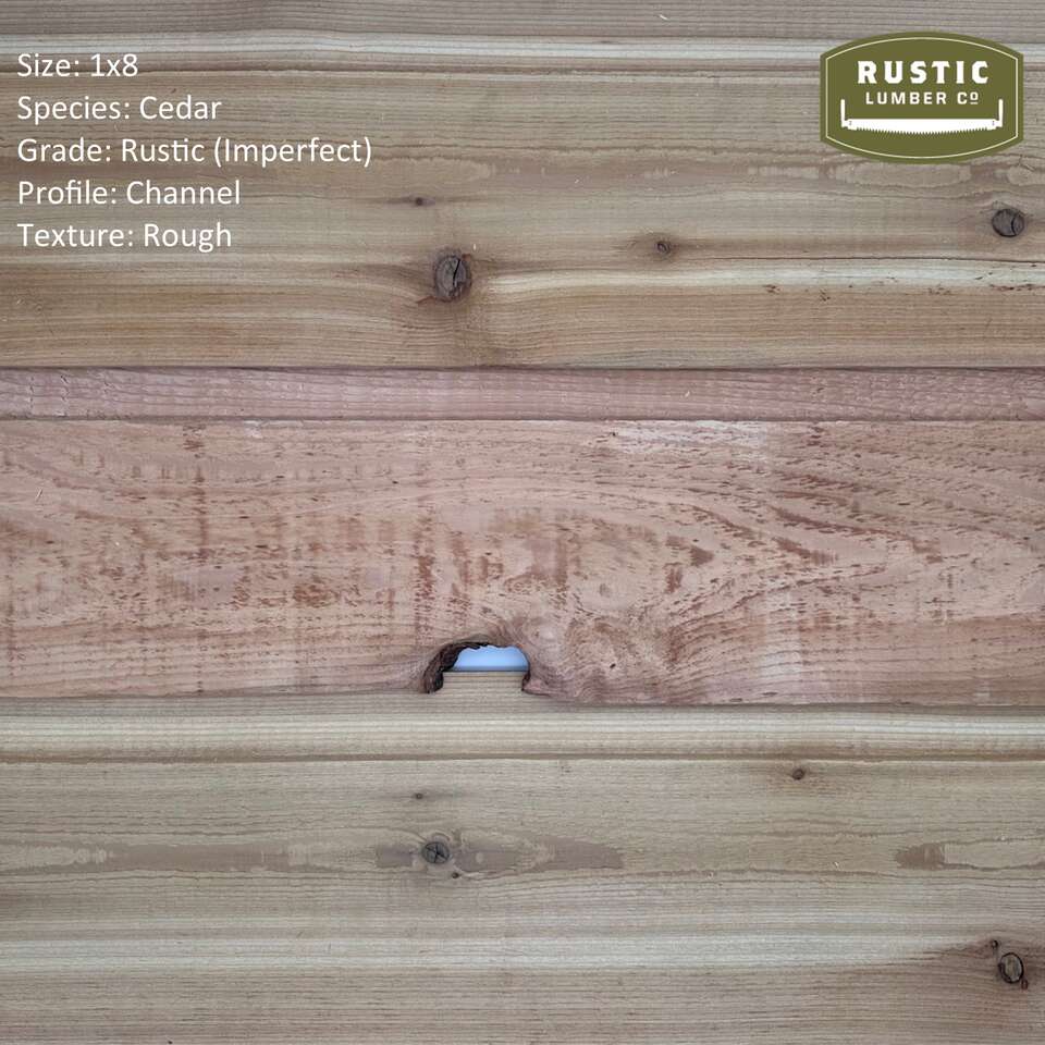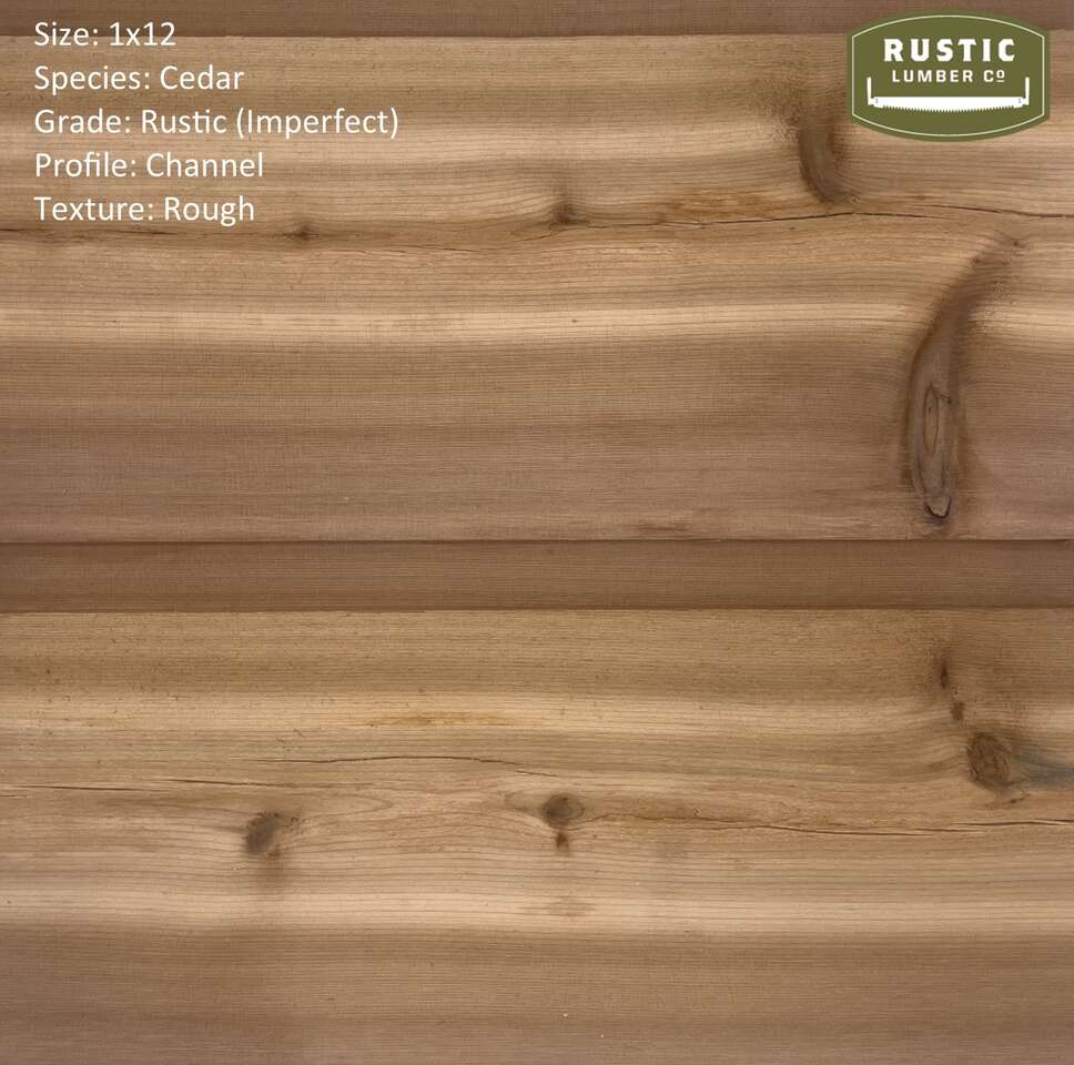 Cedar Channel Siding with a 1" reveal in 1x8 (Select Grade), 1x10 (Rustic and Select Grade), and 1x12 (Rustic Grade).