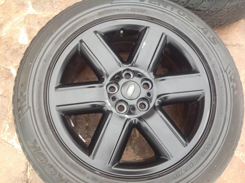 LIKE NEW SET OF 4 BLACK 6 SPOKE LANDROVER FACTORY 19" - 5 LUG - WHEELS! HANKOOK TIRES - MATCHED SET OF VENTUS AS 255 X 55 X 19. MUD & SNOW TIRES EXTRA LOAD. CALL DOUG FOR DETAILS: 801-949-9415