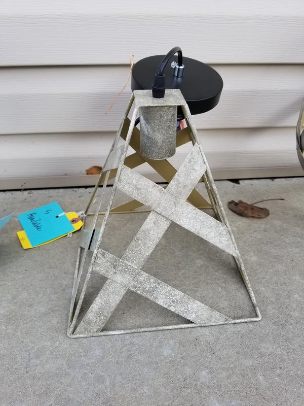 1 AVAILABLE IN CEMENT TRIANGULAR PENDANT 8" TALL 7" WIDE $40.00 / RETAIL; $69.99