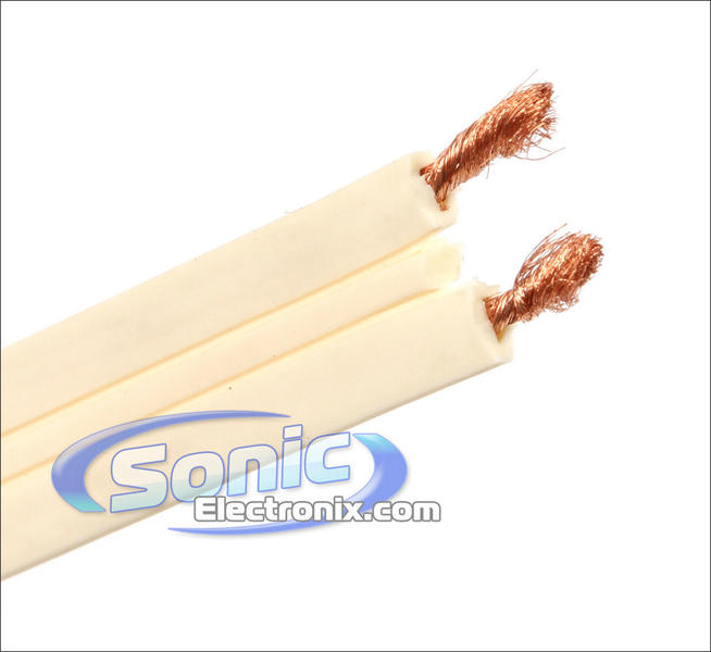 SuperFlat Mini Navajo White Easy-to-Hide Speaker Cable 300 Fine copper strands provide enhanced clarity and more accurate transfer of music signals Low capacitance design provides signal transfer over long runs for the ultimate music reproduction Heavy-duty Duraflex jacket eliminates abrasion and withstands high temperatures for long-lasting performance 24k Gold-Plated connector pins provide superior conductivity Lock Notch design locks cables securely in place Convenient for home theater systems and other out-of-wall hookups Flexible design for simple routing in corners and around doorframes Flat profile design allows cable to run along baseboards and under carpet Navajo White jacket blends well with most white walls and trim