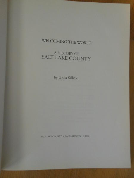 Welcoming the World - The History of Salt Lake County by linda Sillitoe. Hard Cover with orifinal dust jacket. Measures 9 x 11, 290 pages. Please see more by seller for many collectibles and vintage items from our home and family home.