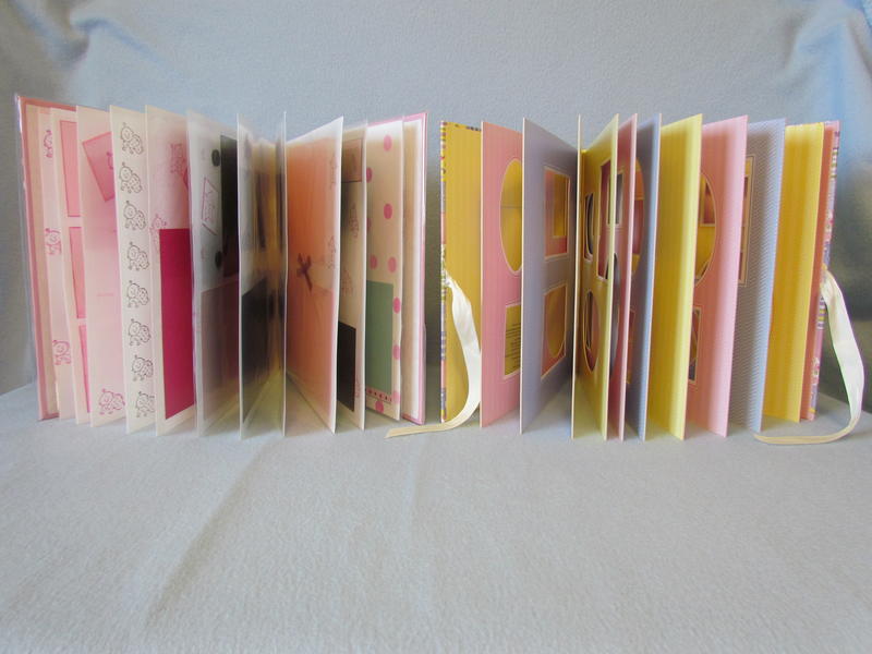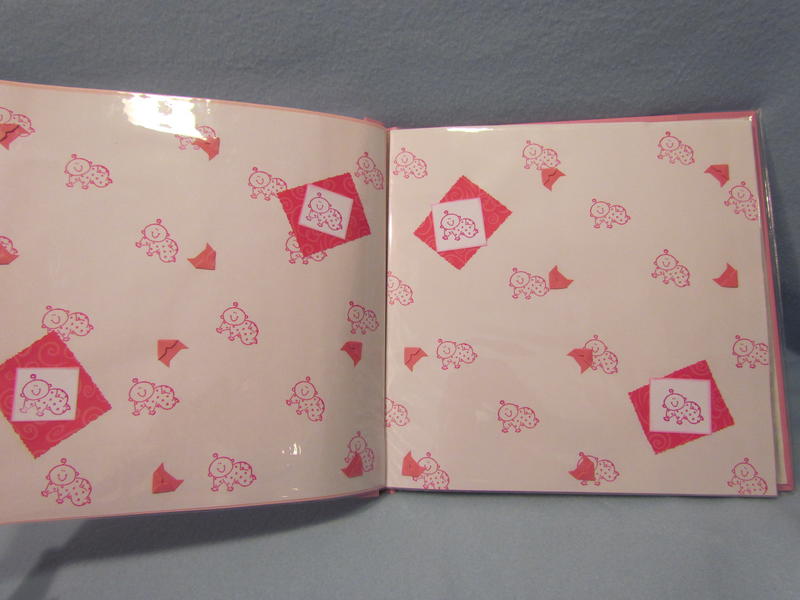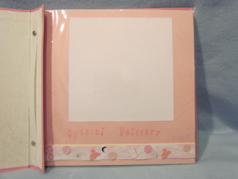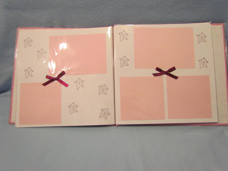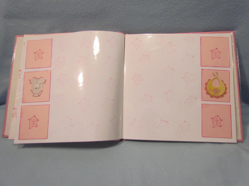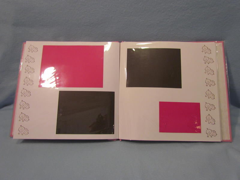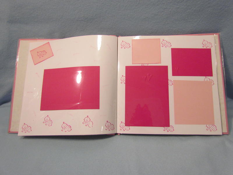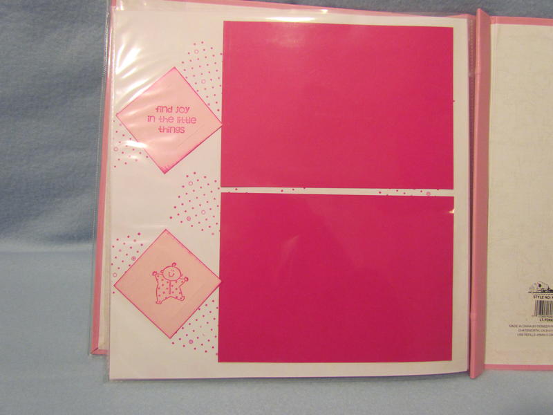 $35 The soft pink Pioneer brand album has a clear book cover, 11 top-loading page protectors, and 22 darling pre-made pages decorated perfectly for a baby girl; simply add your own photos and you’re done in a snap! It has a few tiny cut marks in the upper left hand corner on the front, but these are not very noticeable with the plastic cover on.