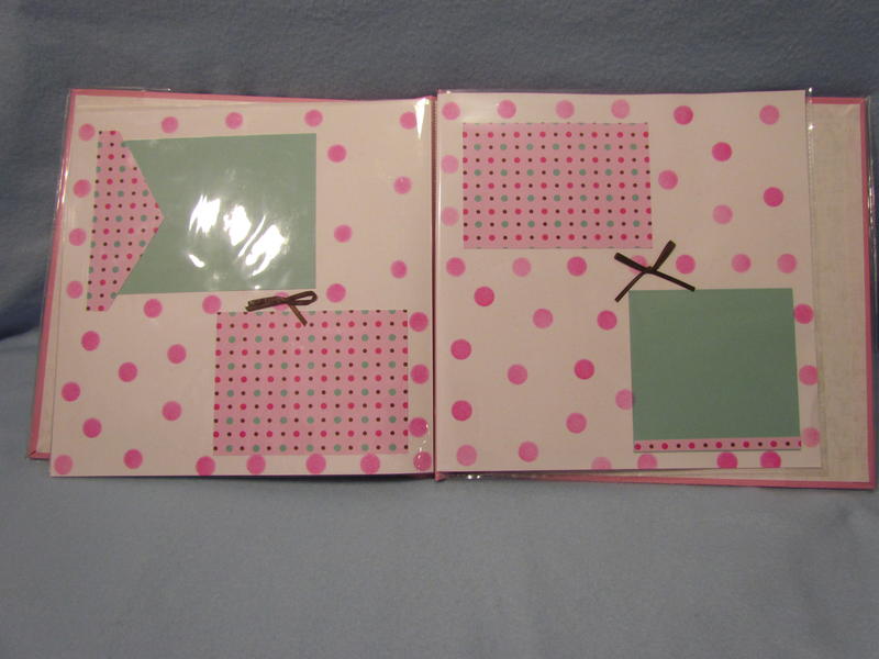 $13 The Recollections pink & white polka dot design album has a clear book cover, 10 top-loading page protectors, 10 white pages inserted into the protectors.