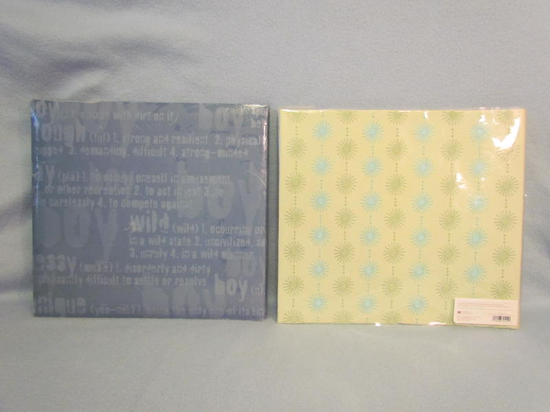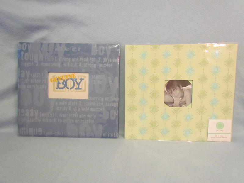 Reminisce brand “Genuine Boy” Album is a slate blue color with boyish words decorating the cover, has a picture window on the front, contains 10 top-loading page protectors, & 10 white pages inserted into the protectors; album is new, however, cover shows some storage wear with scuffs/scratches; but this adds to the rustic “boy” theme – please see pictures.