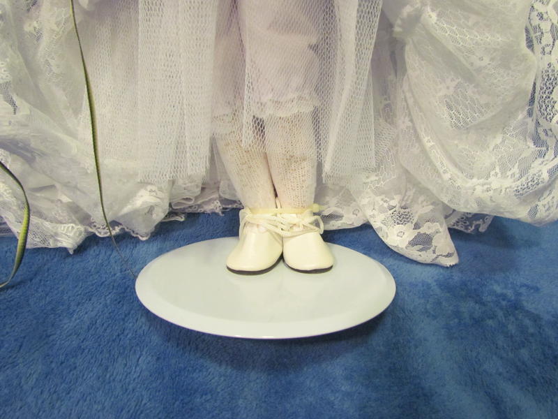 $15 Doll in swing - she was dropped so her leg is broken, so it was taped back together and you don't see the broken part since it's under her bloomers and dress. She's still so very pretty to be displayed.