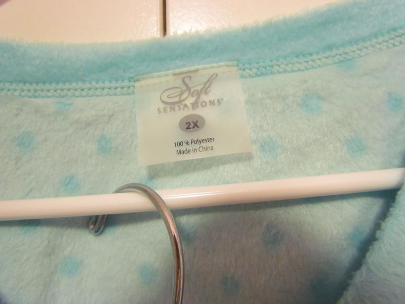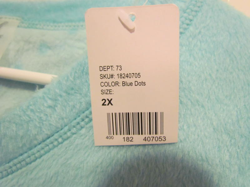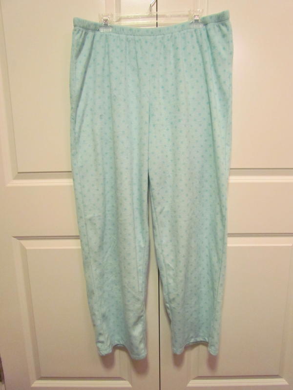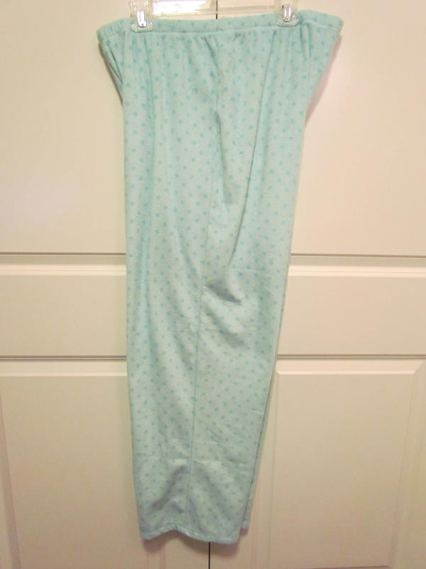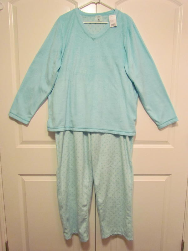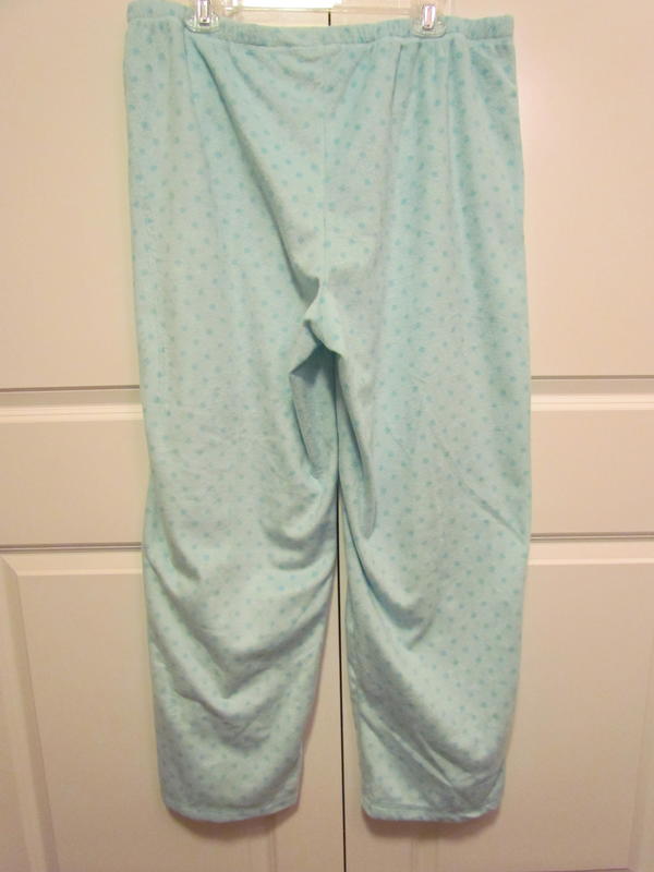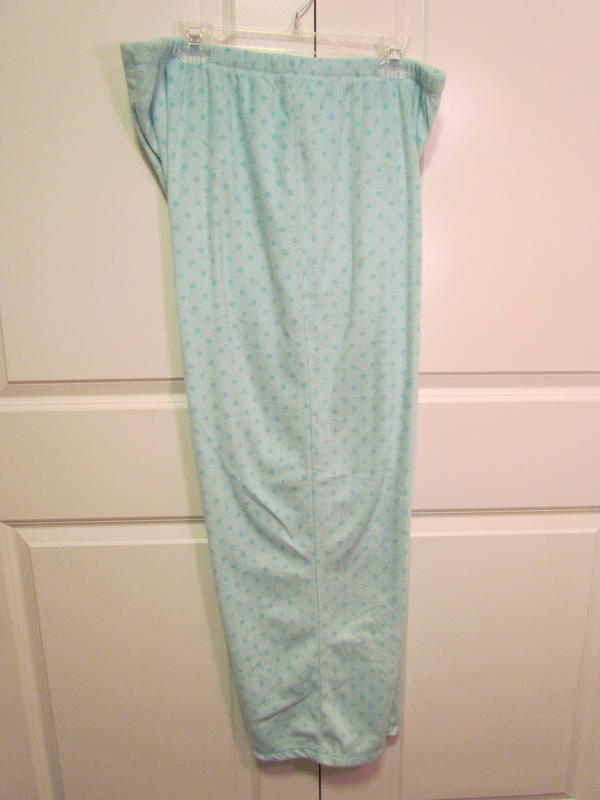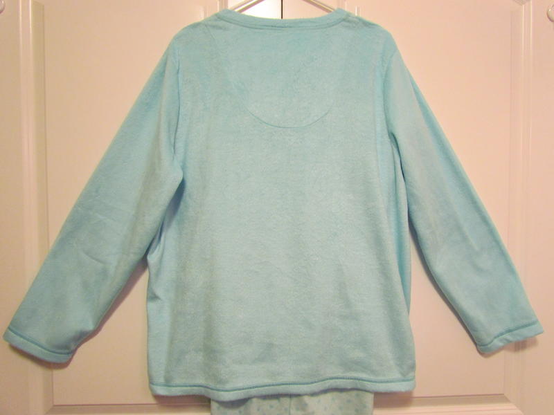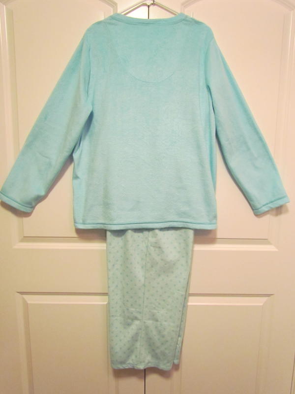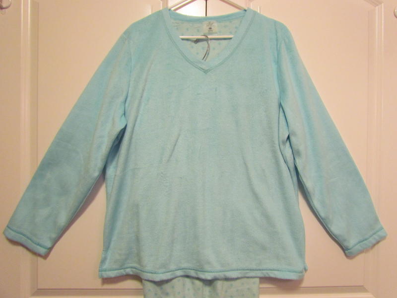 This comfy pajama set will keep you nice & warm in the winter months of the year. They are a lovely teal color with the top being a couple of shades darker that the bottoms & the bottoms have the same color as the top in polka-dots. Item is new with tags.