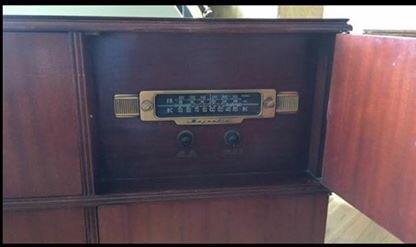 1930-1940's Majestic Radio and Turntable Console. In fantastic condition for a Radio/Phonograph console made in the 1940s. It has a very clean mahogany cabinet that has few scratches. The turn table appear to be original and it is in very good condition, I believe it only plays 78's but I do not have one to test. It works according to seller I purchased from. And has original parts.