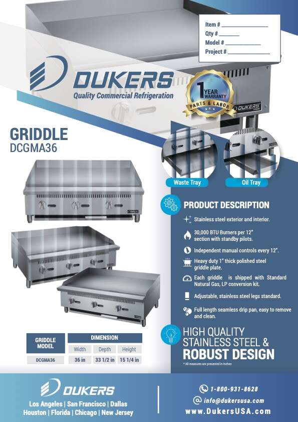 Cook everything from pancakes, sausages and anything in between with the Dukers DCGM36 36 in. W Griddle .