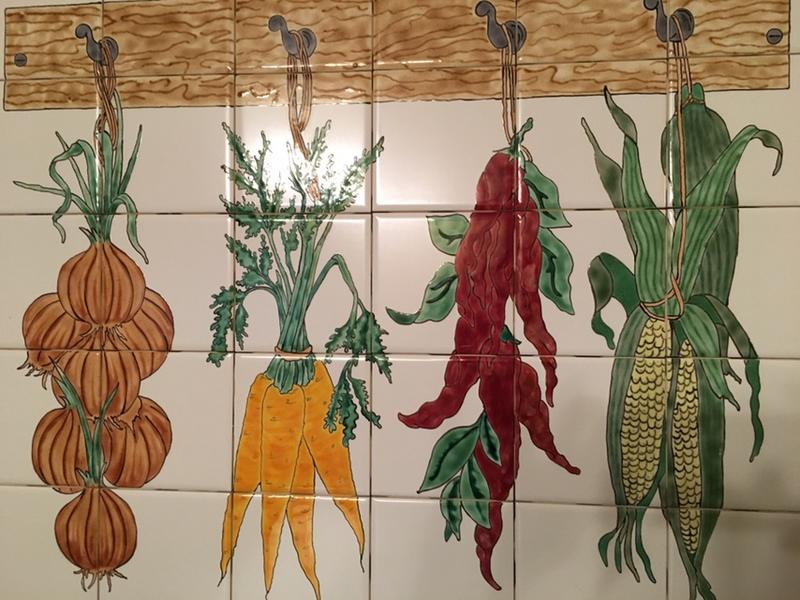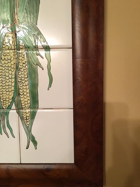 Beautiful glazed and fired ceramic tile painting of vegetables professionally mounted and framed in walnut burl wood frame, was asking $100 PRICE REDUCED to $50. The frame alone is worth much more that this great price. Dimensions are 25 inches high by 30 inches wide. Please call, text or email for more information if interested. Thanks for looking!