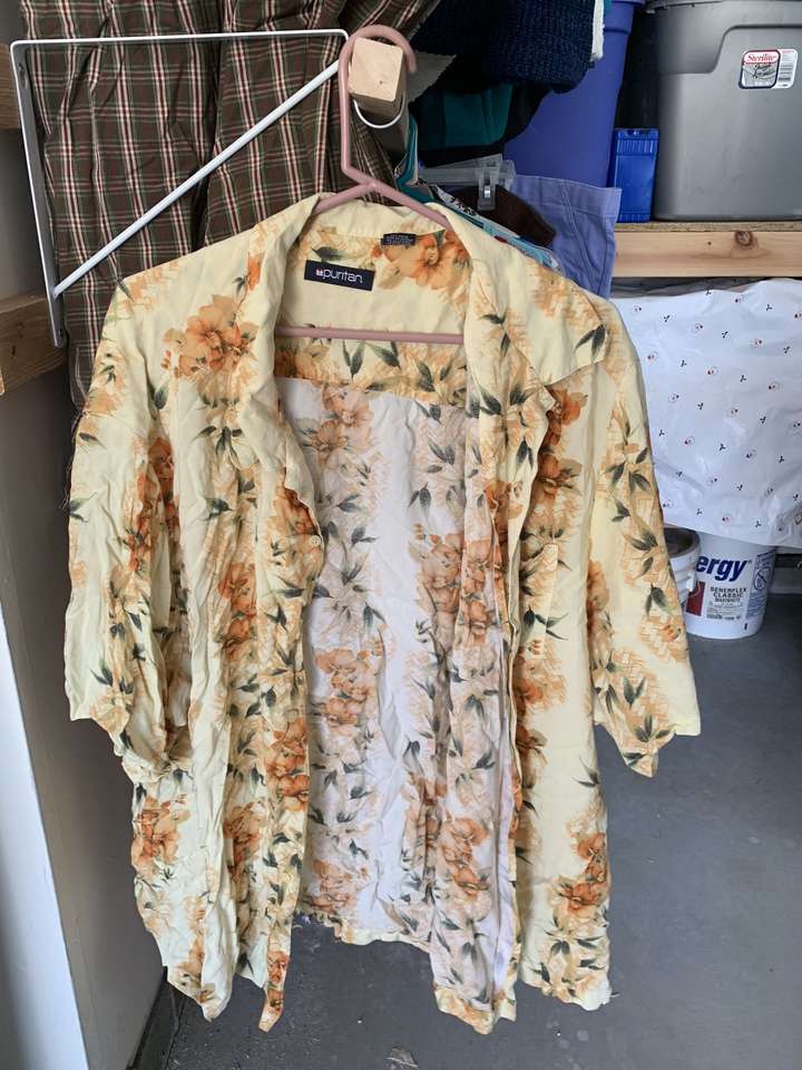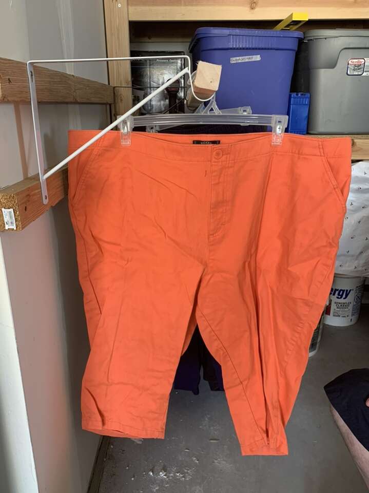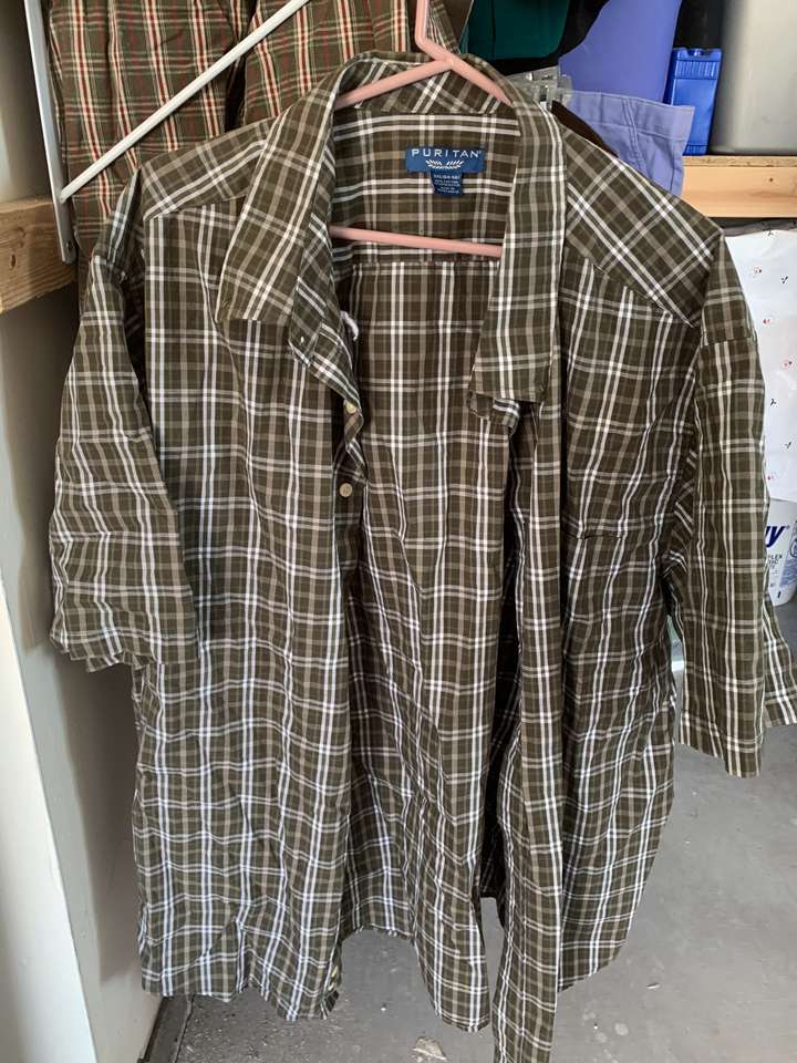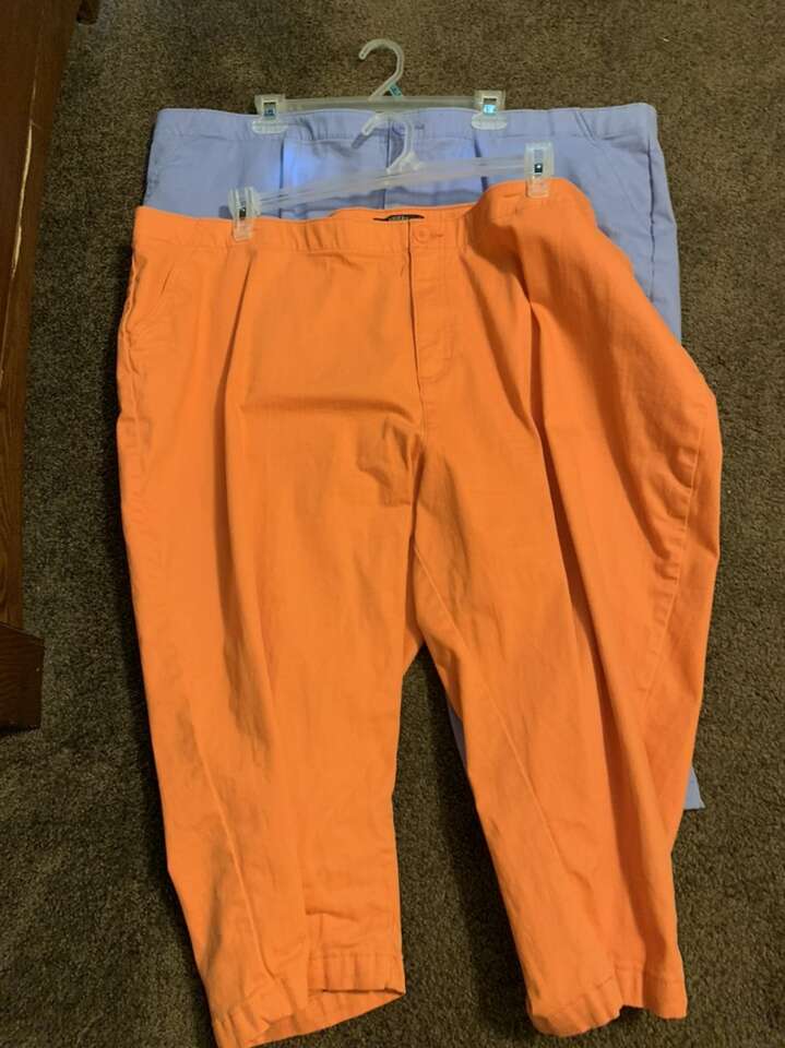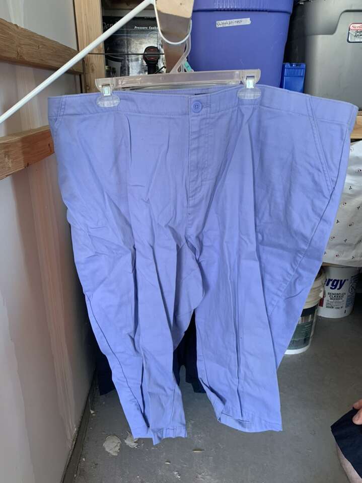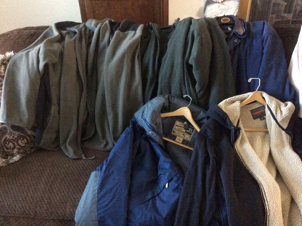 $5.00 each. Cash only. 3xl men’s short sleeve button shirts Men’s jackets $5 each Women’s jackets $5 each Women’s capri size 26 $5 each