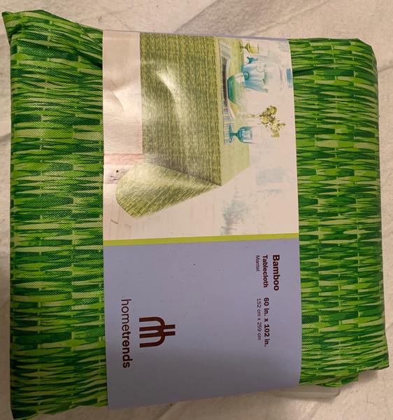 2 new In package table cloths. Color 1 green 1 orange. $4 each or both for $6 Oblong 60 x 102