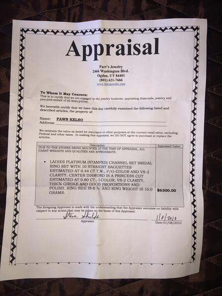Gorgeous Ladies size 6 1/2 bridal set. Ring sets in 10 straight baguettes estimated .44 ct. center diamond is a princess cut estimated.80 ct.