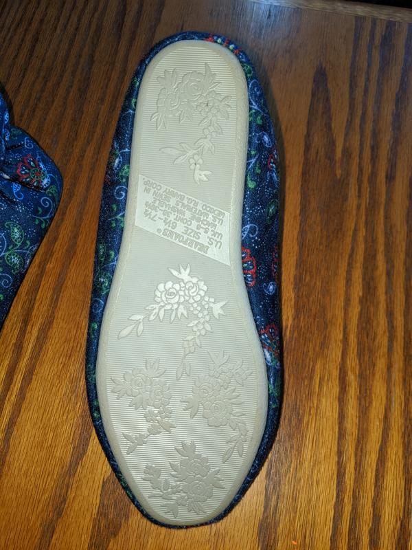 Blue flower print slippers. Never been worn. Size 6 1/2 text if interested. Asking .75.