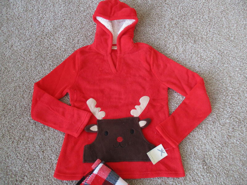 New with tags. Super soft/warm/cozy and the hood is a plus at night. I use one of these and love it in the winters. Would make a lovely gift.