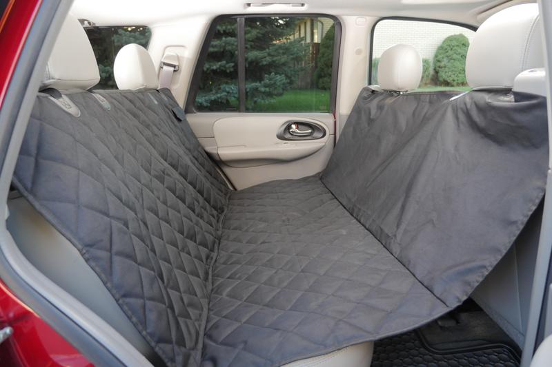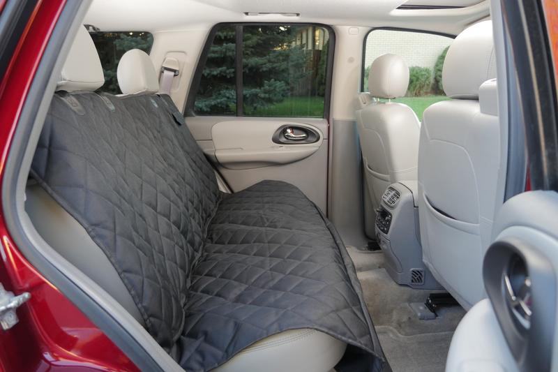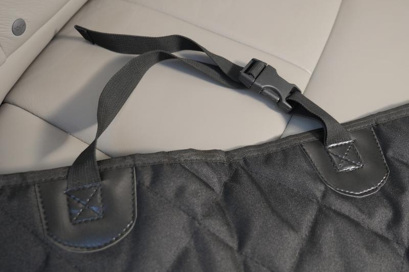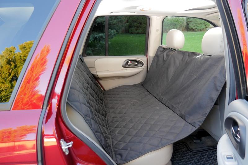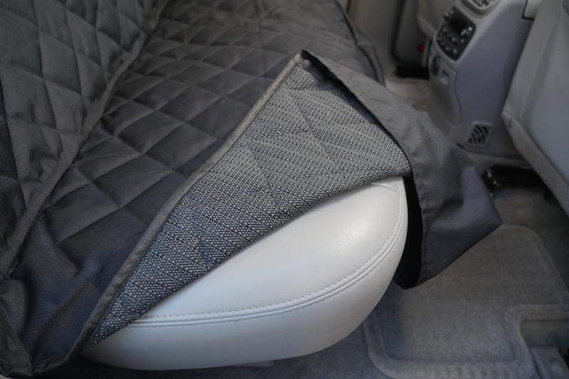 Premium heavy duty 600D polyester fabric Non slip material backer with seat anchors Optional hammock Leash/utility pocket Seat belt openings Fits most cars, SUV’s and trucks